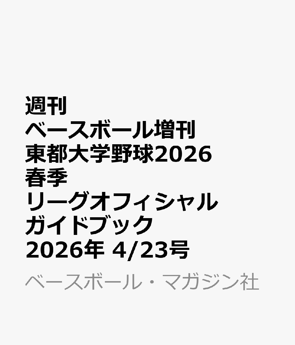 週刊ベースボール増刊 東都大学野球2026春季リーグオフィシャルガイドブック 2026年 4/23号 [雑誌]